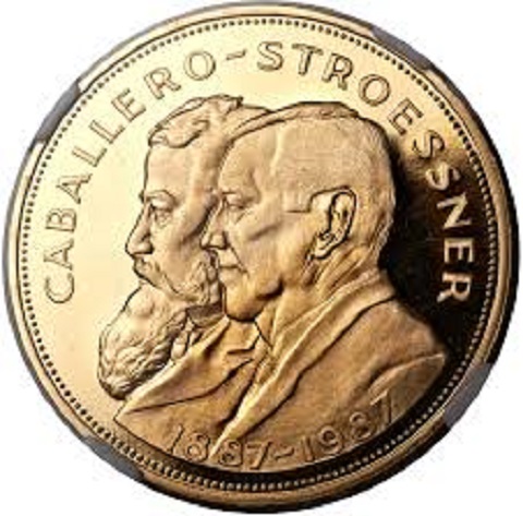 Stroessner ließ eine Münze mit seinem Gesicht und dem des Colorado-Führers Bernardino Caballero auf derselben Seite prägen.