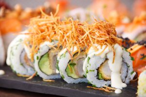 Das japanische Gericht Sushi findet auch in Paraguay immer mehr Anhänger. Die mundgerechten Stücke aus erkaltetem Reis mit weiteren Zutaten wie Fisch, rohe Meeresfrüchte, Gemüse, Tofuvarianten, Ei und vielen weiteren Möglichkeiten sind leicht bekömmlich und beliebt.