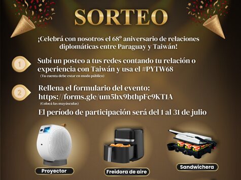 Um diese historische Verbindung zu feiern, lädt die taiwanesische Botschaft in Asunción die Öffentlichkeit ein, an einer Gedenkverlosung mit zehn Preisen teilzunehmen wie unteranderem Projektor Heißluftfritteuse, Mikrofon, Sandwichtoaster, Lautsprecher und Stanley-Cups.
