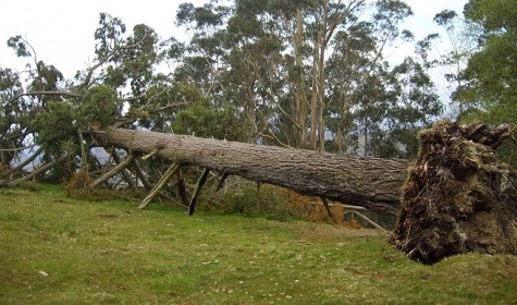 Die HOlzfäller werden schon das Prinzip begriffen haben. Sie schlagen eine Kerbe in den Baum, sägen dann von der anderen Seite und stellen sich natürlich auf die Seite, in der die Kerbe ist, weil da der Baum ja nun viel leichter ist und logischerweise zur anderen Seite kippen muss, weil er da schwere ist 🙂
