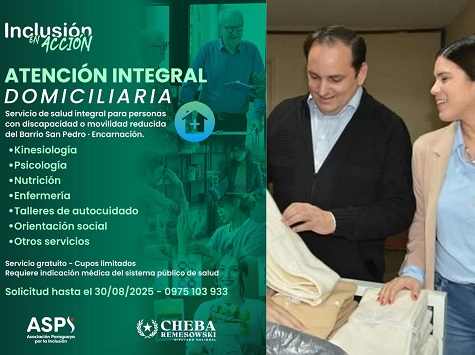 Unter dem Motto “Inklusion in Aktion“ startet die paraguayische Vereinigung für Inklusion in Zusammenarbeit mit dem Abgeordneten Sebastián Remezowski einen umfassenden häuslichen Pflegedienst, um Menschen mit Behinderungen und eingeschränkter Mobilität im Stadtteil San Pedro von Encarnación den Zugang zur Gesundheitsversorgung zu erleichtern. Dieser Service ist völlig kostenlos.