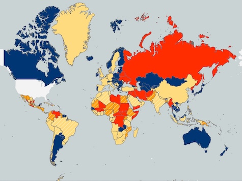 Auf Stufe 4, wo Reisen nicht empfohlen werden, liegt Venezuela, auf einer Skala, die der von Russland entspricht. Paraguay, das mit der US-Politik übereinstimmt, wird besser eingestuft als Länder mit linken Regierungen und Positionen, die von denen der Vereinigten Staaten abweichen.
