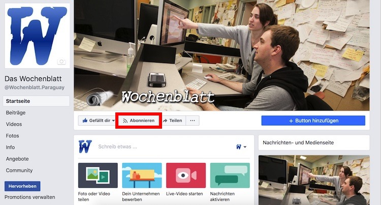 Asunción: Das soziale Netzwerk Facebook hat seinen Algorithmus geändert, womit Wochenblatt Nachrichten nicht mehr allen angezeigt werden. Lesen Sie hier wie Sie es umstellen können.