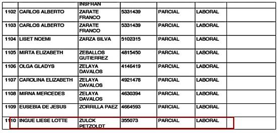 Ingue Liese Lotte Zulck Petzoldt ist der Name der Person, die in den offiziellen Dokumenten als weiblich identifiziert wurde und als Reinigungskraft auf Platz Nr. 1.110 der Liste erscheint, die der beliebteste Geschäftsmann der Nationalen Direktion für öffentliches Beschaffungswesen (DNCP) vorgelegt hat.