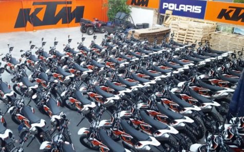 Die weiß-orangefarbigen Motorräder haben 690 ccm und kosteten pro Stück 8.000 US-Dollar. Importiert wurden die von der Firma KTM Paraguay.