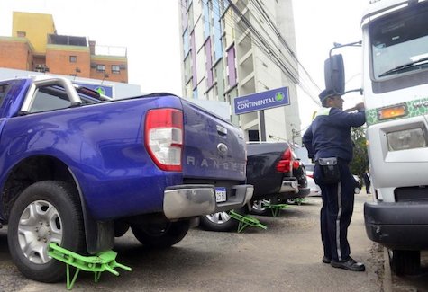Mehrere Argentinier, die zum Shopping nach Asuncion kamen, waren im Aloft Hotel untergebracht. Da das Hotel nur über 50 Stellplätze verfügt, und diese schon belegt waren, mussten sie sich außerhalb etwas suchen. Ganz in der Nähe, vor einer Bank, boten ihnen vermeintliche Parkplatzwächter einen Ort an, an dem sie für 1.000.000 Guaranies ihre vier Autos stehen lassen könnten. Einzige Bedingung war diese bis 10.00 Uhr am Folgetag wegzufahren. Als einer der Argentinier vor der besagten Zeit zum Auto kam wurde er von Krallen überrascht, die die Straßenpolizei der Hauptstadt angebracht hatte. Die Angestellten der Bank informierten die Straßenpolizei über die belegten Parkplätze und diese reagierten laut Gesetz.
