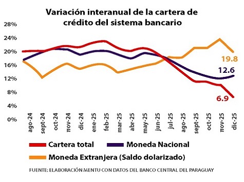 Der paraguayische Bankenverband (Asoban) warnte zum Jahresende, dass die Liquidität im Finanzsystem seit Jahren rückläufig ist. Grund hierfür ist die starke Expansion des Kreditgeschäfts in den letzten zwei Jahren. Während die Dollar-Liquidität bereits seit 2021 schrumpft, sinkt die Liquidität in Guaranies seit Anfang 2024 sogar noch stärker. Die Ursache liegt in der wachsenden Kluft zwischen Kreditvergabe und Einlagenwachstum: Kredite werden schneller vergeben, als neue Spareinlagen hereinkommen.