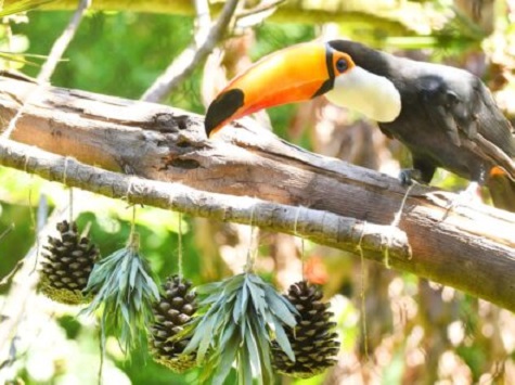 Während der Veranstaltung erfuhren die Teilnehmer mehr über diese Praxis, die darauf abzielt, natürliche Verhaltensweisen der Tiere zu stimulieren und deren allgemeines Wohlbefinden zu garantieren. In diesem Rahmen wurden in den Gehegen der Tukane und der Mytũ-Vögel (Hokkohühner) weihnachtliche Girlanden aufgehängt. Diese bestanden aus geflochtenen Blättern, Pinienzapfen, Früchten und anderen für die Vögel attraktiven Elementen.