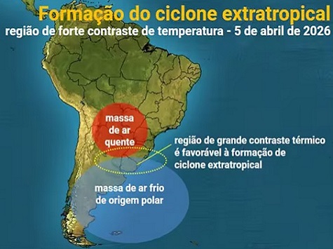Asunción: Brasilianische Medien berichten, dass ein extratropischer Zyklon das Nachbarland treffen wird. Dieses System wird voraussichtlich auch Auswirkungen auf Paraguay haben. Den Veröffentlichungen zufolge werden schwere Unwetter und ein markanter Wetterumschwung erwartet.