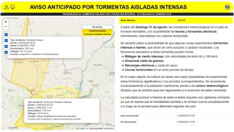 Ab dem morgigen Sonntag, dem 31. August, wird das Wetter im ganzen Land instabil. Es ist mit zeitweiligen Schauern und Gewittern zu rechnen, die von vorübergehenden Besserungen unterbrochen werden. Die Bevölkerung wird vor der Möglichkeit intensiver, lokal begrenzter Stürme gewarnt.