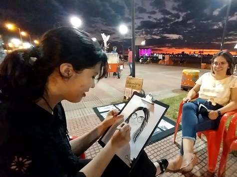 Encarnación: Die junge Débora Paris aus der Hauptstadt von Itapúa ist eine Künstlerin, die sich weiterentwickeln möchte, indem sie in wenigen Minuten handgefertigte Karikaturen anbietet.