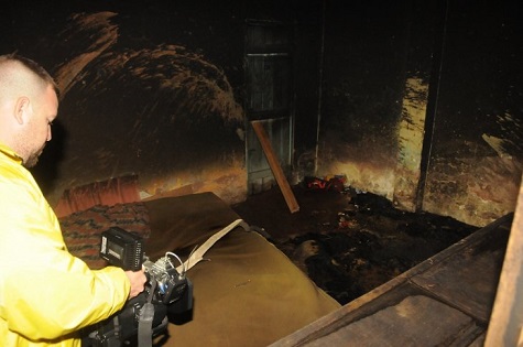 Freiwillige Feuerwehrmänner waren schnell am Einsatzort und kontrollierten den Brand, der praktisch das gesamte Haus zerstörte.